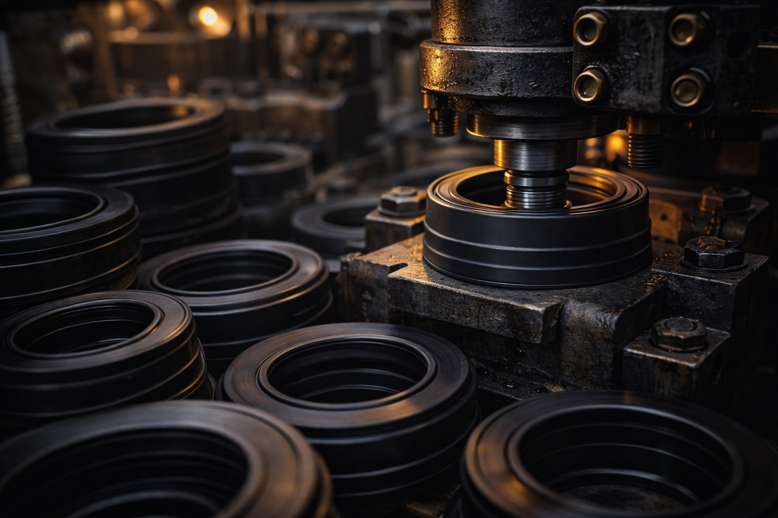 Production of rubber items and hydraulic seals
